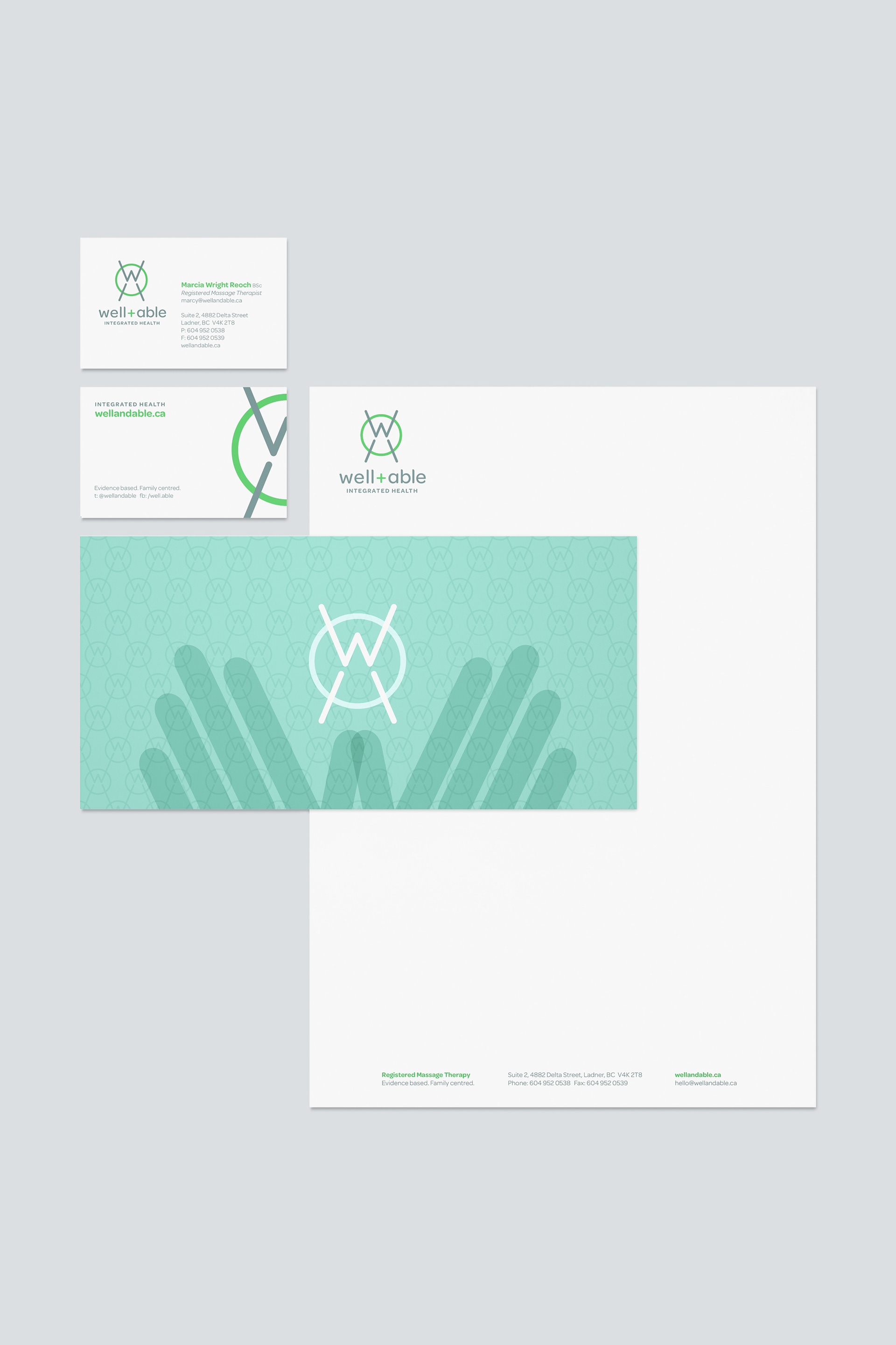 Registered massage Therapists, Marcia and Michael, wanted to start their own clinic in Ladner, BC. I helped with branding—including suggesting the name and tagline, business cards, stationery, signage, patient forms, and a website.